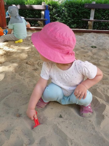 A hinta egy vagy két személyt köt le, meg azt aki óvatlanul elé vagy mögé szalad. A csúszda tetején néha megy a terefere-beelőzés-lökdösődés, de a homokozó, az ahol egyszerre a legtöbben bandáznak a gyerekek. A lapát, gereblye, vödör, szita és formák tucatjain túl a különböző méretű markolók, teherautók is megtalálhatók itt. Széles a repertoár, de nem eléggé, mert tipikusan mindenkinek a másé kell.