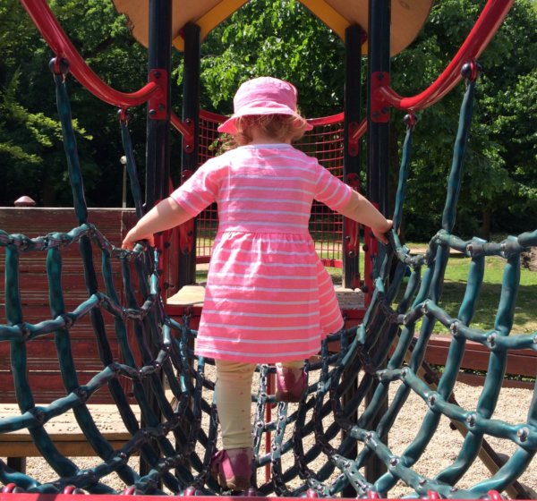 Flóra például a kicsiknek szánt komplexumon majdnem teljesen egyedül, ügyesen végigment. Mindent megtalált rajta, amit szeret. Mászás, csúszás, kukucskálás.